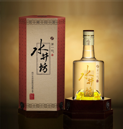 水井坊•井台装,产于水井坊酒地理标志保护区,传承“国家级非物质文化遗产——水井坊酒传统酿造技艺”,精选4年以上基酒调制而成,经由陶坛陈酿1年,酝酿出“陈香飘逸、甘冽净爽”的独特口感。 水井坊•井台装菱柱形外包装,上缀三枚衔环狮头铜钮,全部拉启方可开盒,点滴间高贵清雅。酒瓶置于实木基座之上,形态庄重。酒瓶底内凹处,以内烧画工艺将武侯祠、杜甫草堂、九眼桥、合江亭、水井烧坊、望江楼六幅成都风情图呈现其上,令酒中有画,画中有酒,彰显中国历史文化名酒风范,带来时尚优雅的中国式高尚生活体验。